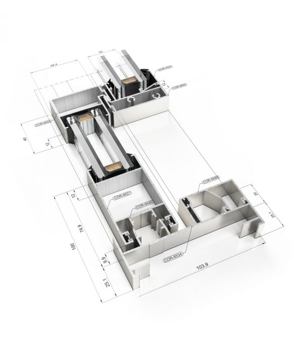 Sistema de ventana y puerta corredera que permite incrementar la capacidad de acristalamiento hasta los 30 mm, mejorando así las prestaciones térmicas y acústicas. Además, presenta un nudo central reducido de 40 mm que posibilita mayor superficie acristalada.