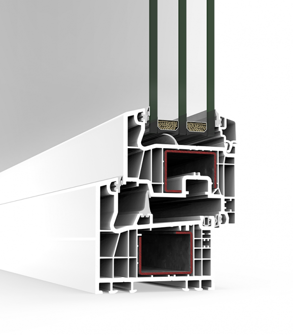 Sistema abisagrado de 84 mm de profundidad de marco y 6 cámaras con excelentes prestaciones térmicas, Uf desde 1,16 W/m²K, y excelente rendimiento acústico gracias a su gran capacidad de acristalamiento de hasta 54 mm.