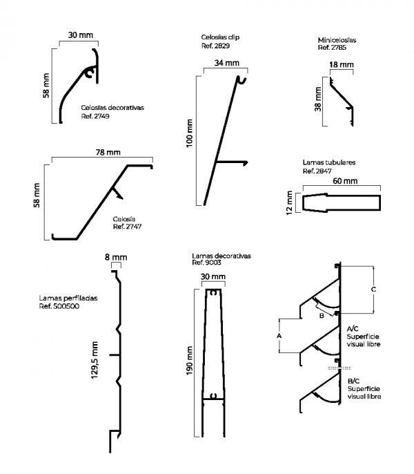Lamas de aluminio extruido diseñadas para configurar una doble piel en cerramientos exteriores e interiores que permite tamizar la luz facilitando la circulación de aire.