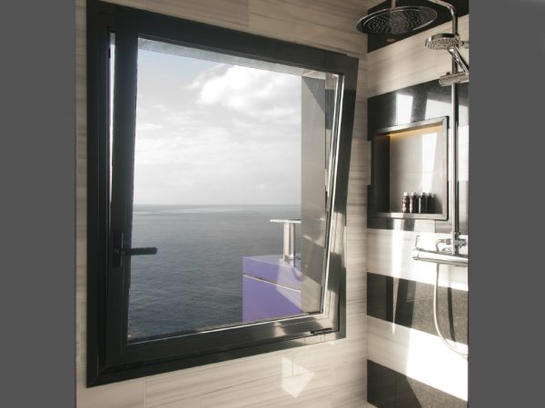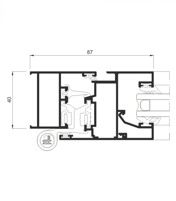 Sistema abisagrado de 40 mm de produndidad con un espesor de perfilería aligerado.