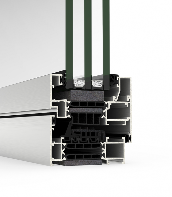 Con 80 mm de profundidad de marco, la serie COR 80 Industrial responde a las exigencias climáticas más severas gracias a su rotura de puente térmico con poliamidas tubulares de 45 mm y la incorporación de perfi les de poliolefina reticulada tanto en el galce del vidrio como en el interior de marco y hoja.