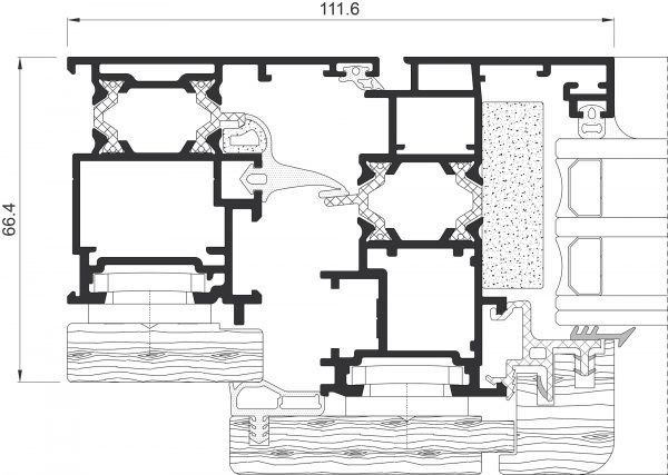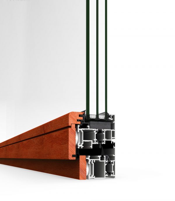 Ventana mixta con rotura de puente térmico en la que se combinan el aluminio y sus excelentes prestaciones en el exterior con la calidez y diseño que aporta la madera en el interior. Para el tratamiento superficial de la cara externa se puede elegir cualquier acabado de la extensa gama de lacados o anodizados CORTIZO. Por su parte, la cara interna está disponible en roble americano, sapelly, pino mellis y más opciones bajo pedido, utilizando siempre barnices ecológicos sin disolventes, transparentes y satinados.