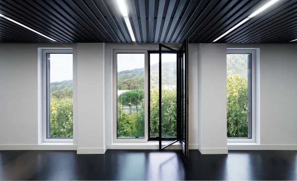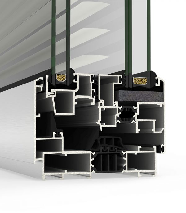 Sistema especialmente indicado para edificaciones ubicadas en zonas con elevada actividad acústica. Esta ventana con rotura de puente térmico y doble hoja oculta de 122 mm, con cuádruple junta y 4 vidrios, permite alcanzar una atenuación del ruido de hasta 50 dB.
